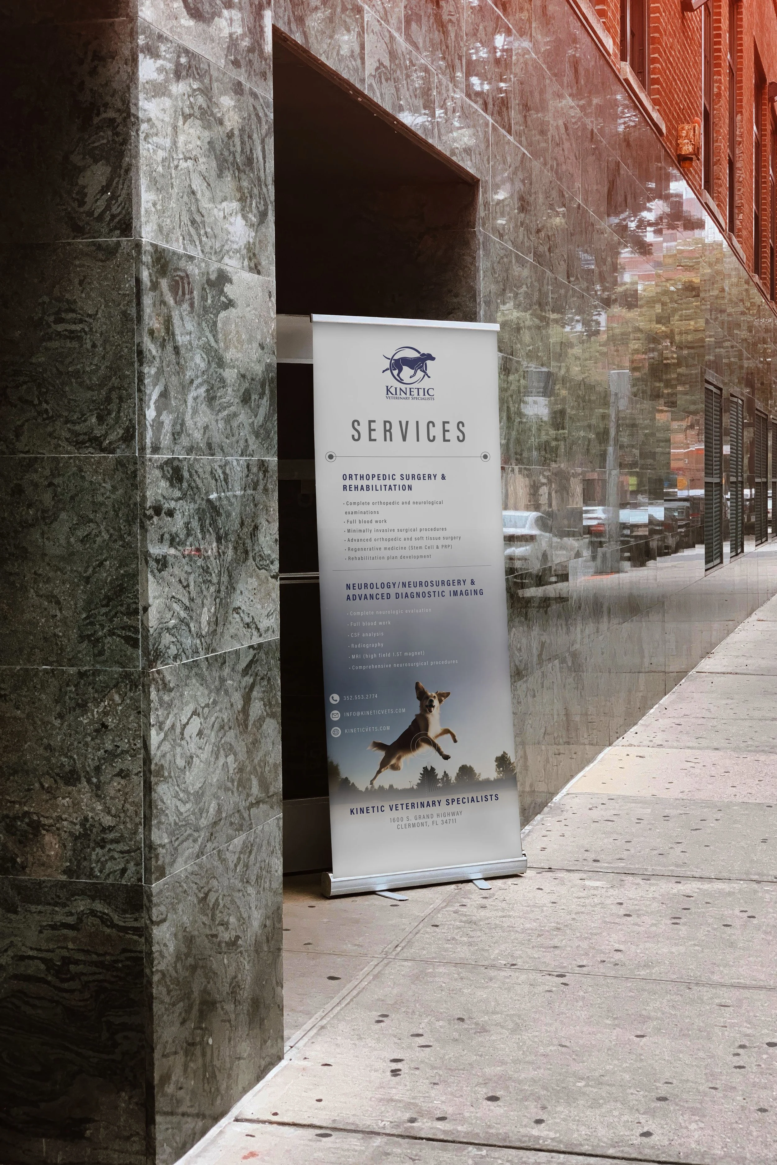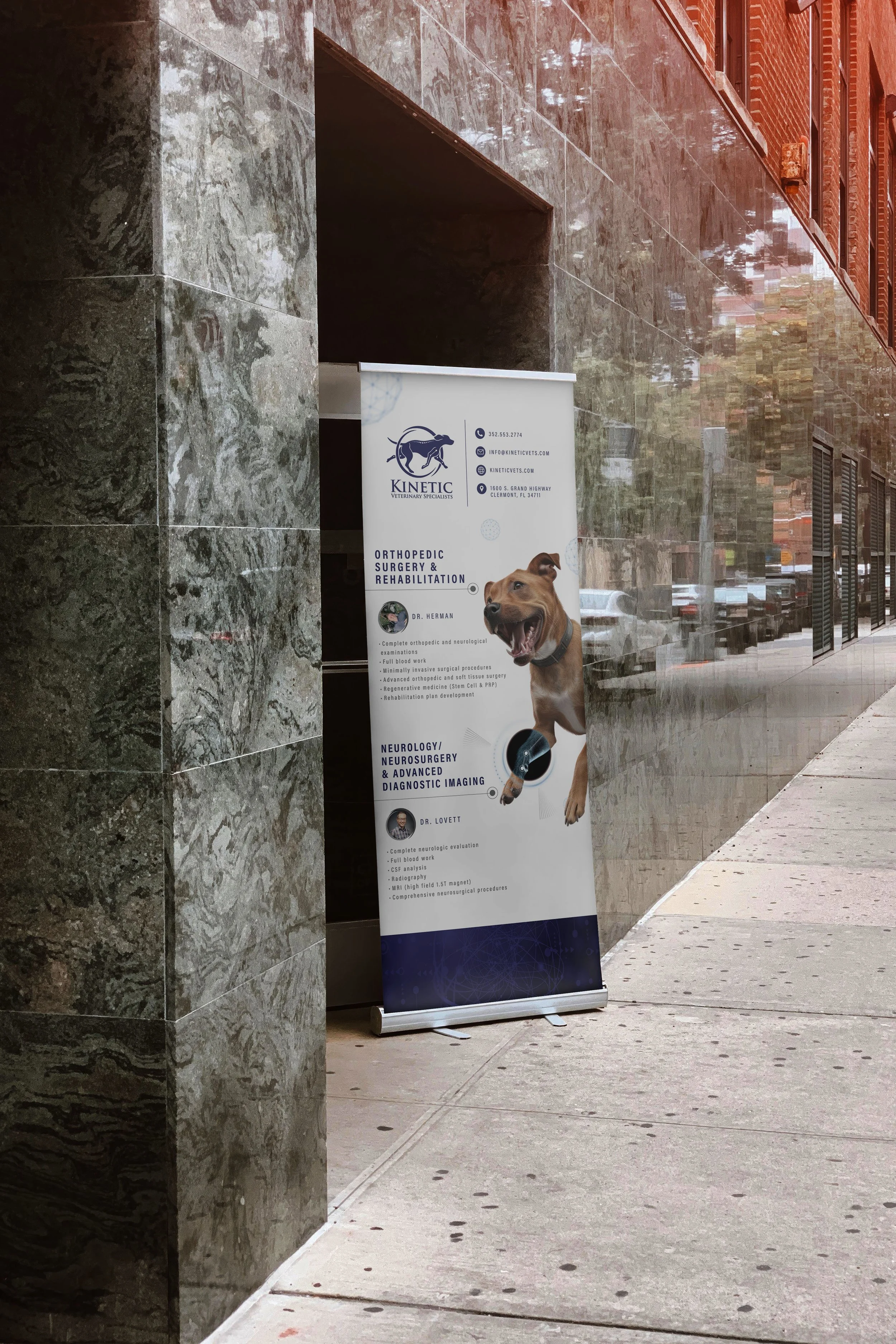 After the branding concept was approved, we began creating assets designed for use in the Kinetic Vets office and during on-the-road tabling at events.