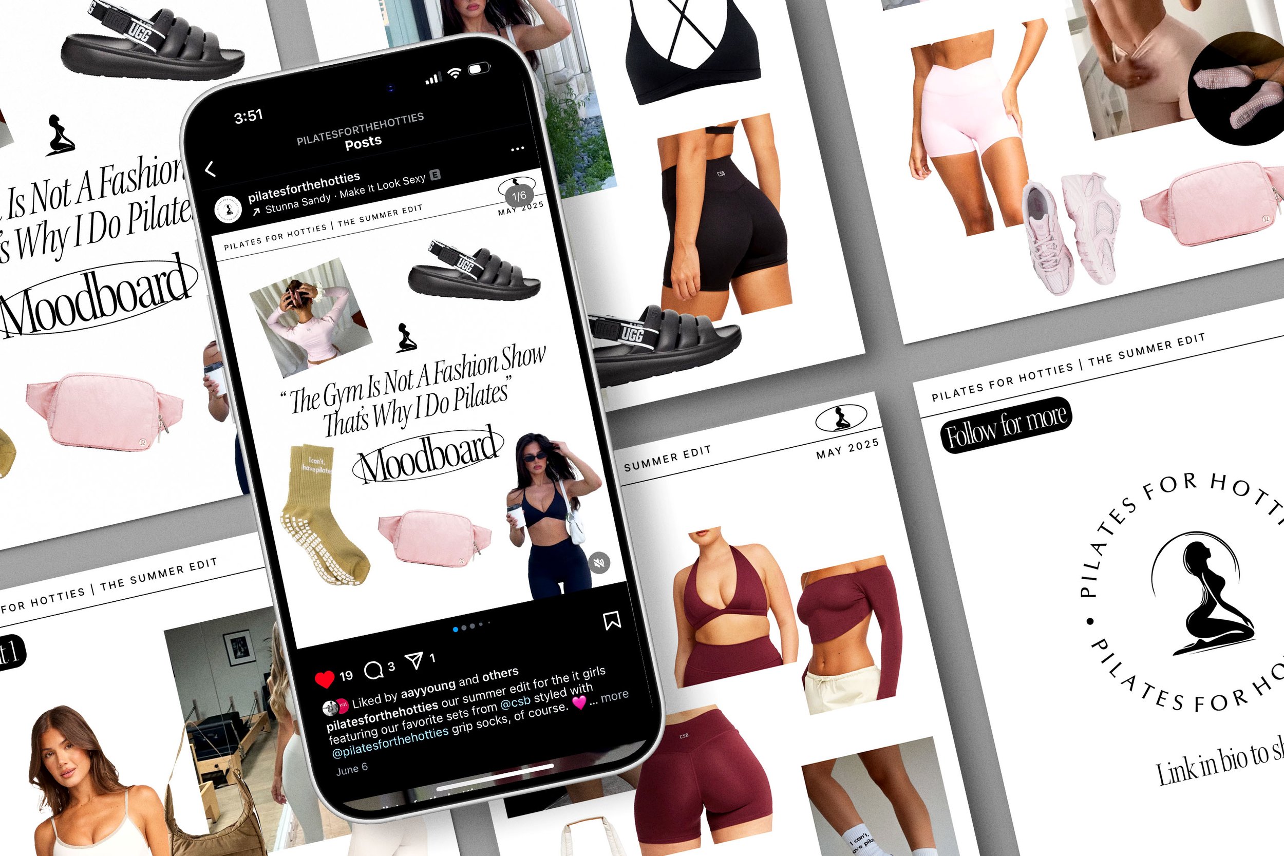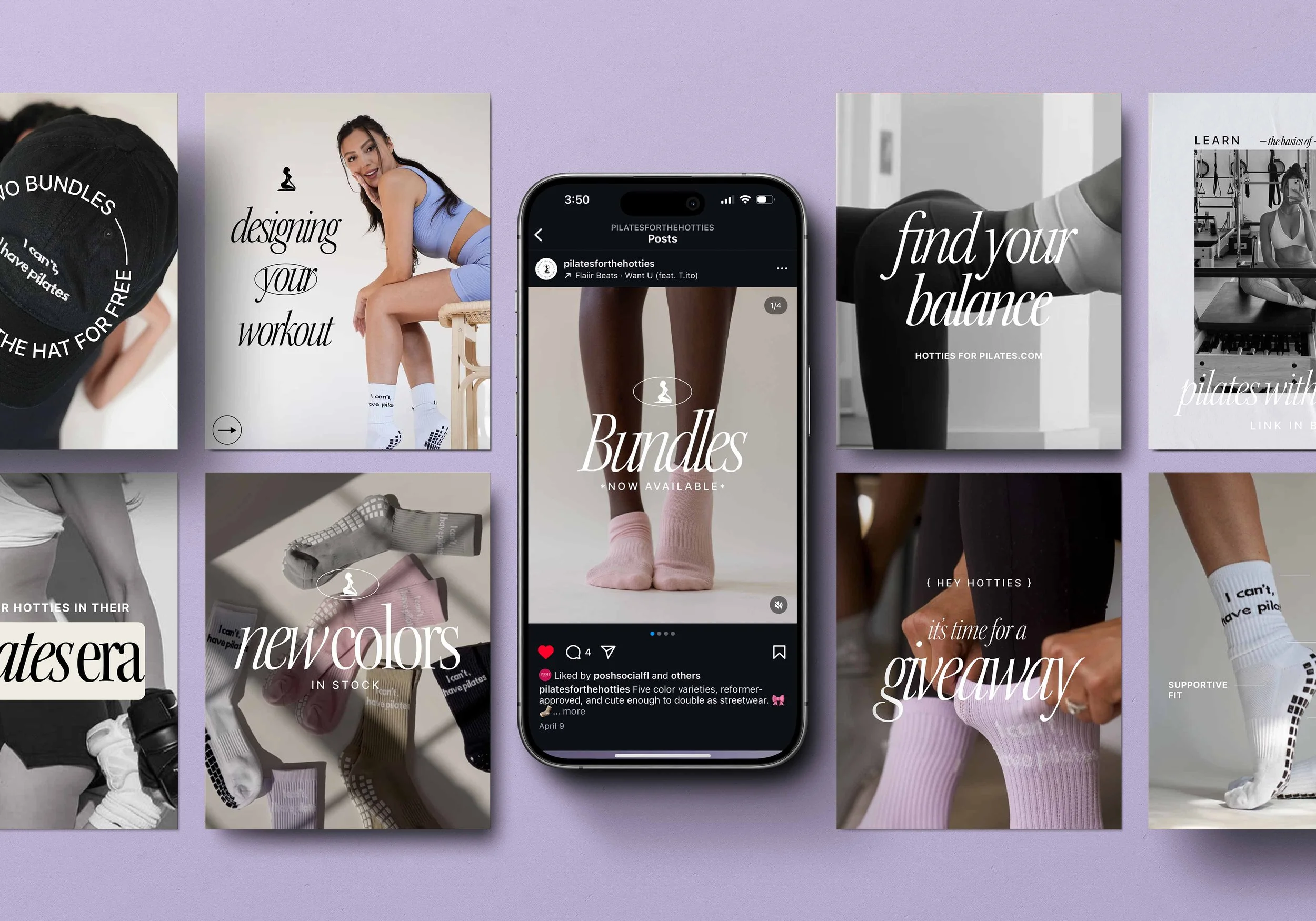 Pilates for Hotties is a pilates sportswear company trying to gain exposure and sales of its products. We are in the process of redesigning their look and feel, highlighting new product drops, and revitalizing their instagram feed.