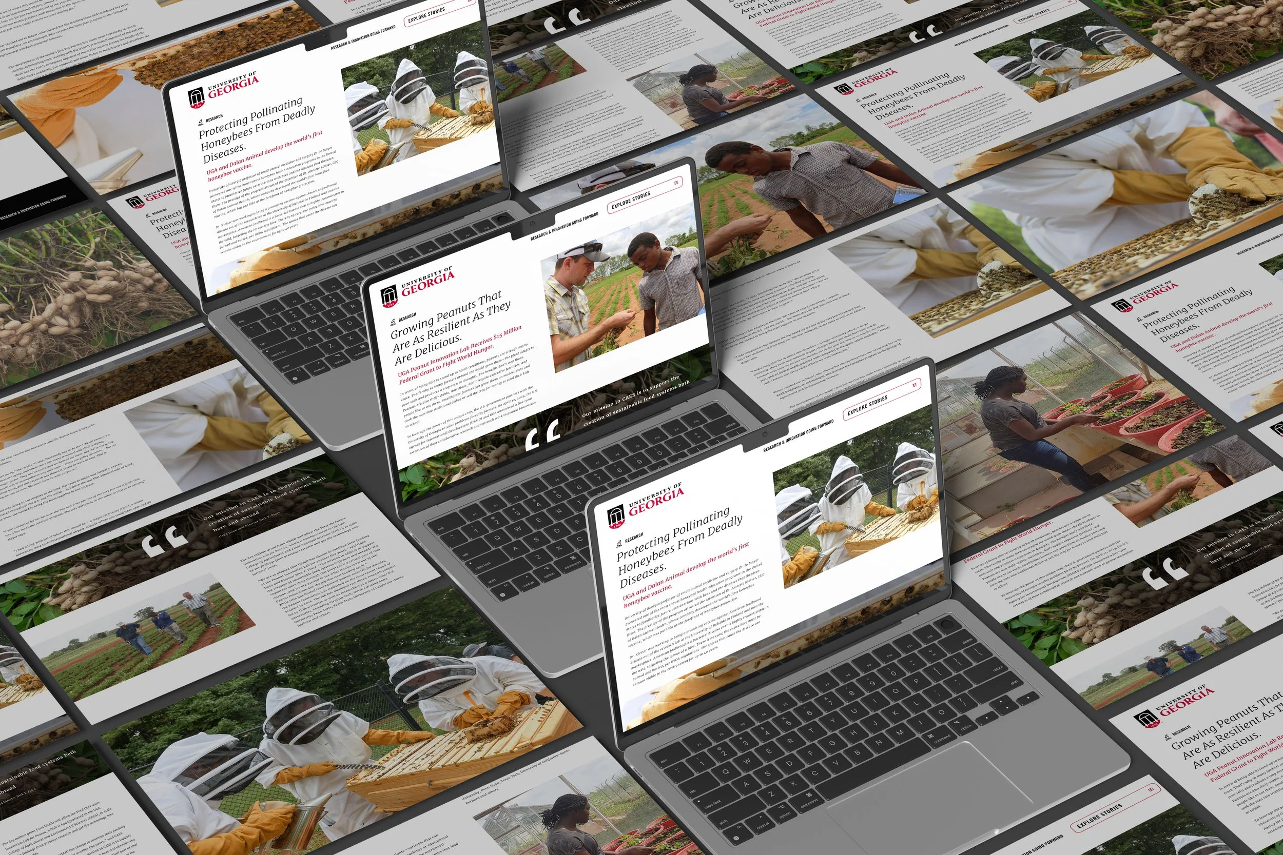 To increase awareness of UGA’s emerging research, we developed a core campaign that released stories of UGA’s successes on a monthly basis. These stories were shared across multiple formats, with full-length features appearing in collegiate print publications, email campaigns, and dedicated microsite pages.