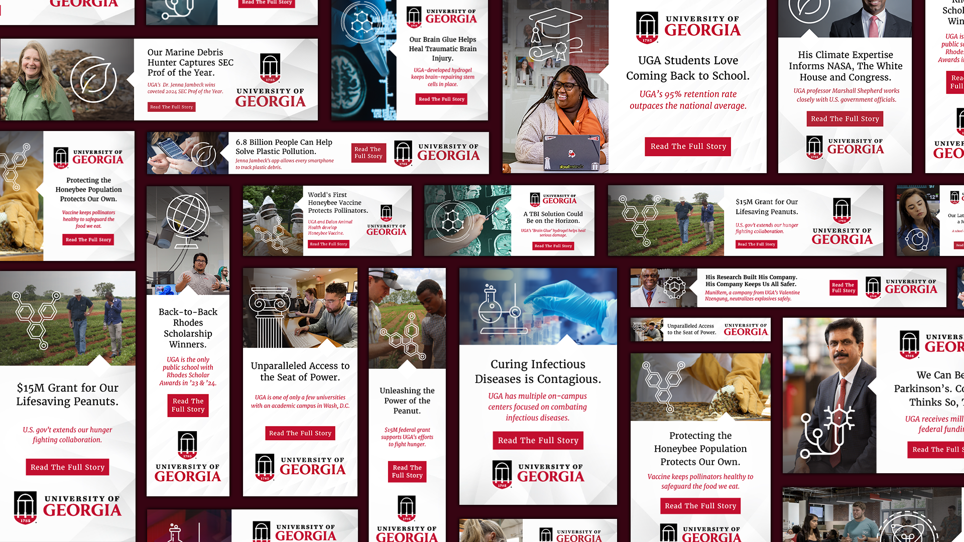 Our charge was to bring UGA’s groundbreaking work to life for university peers, state legislators, and other key stakeholders through impactful channels including print and digital ads, paid and organic social, banner placements, specialty websites, and more.
